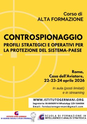 L’Istituto Gino Germani di Scienze Sociali e Studi Strategici, nell’ambito della sua Scuola di Formazione in Intelligence e Analisi Strategica, organizza il corso di alta formazione di tre giorni